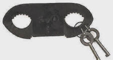 combination of standard leg irons with handcuff spacing. use as a